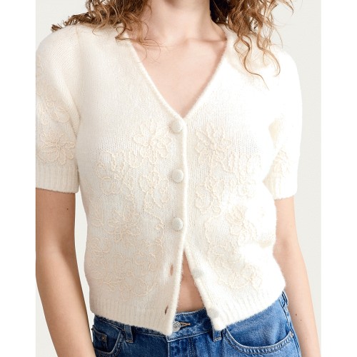 Pure Cotton Pointelle Button Up Cardigan in Cream