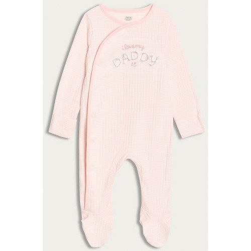 Pure Cotton Textured I Love My Daddy Long Sleeved Sleepsuit in Pink