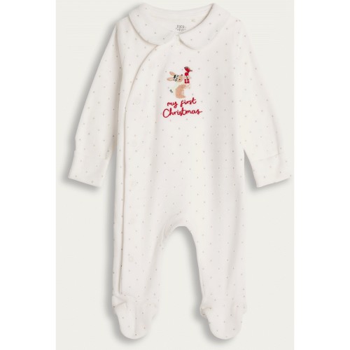 Cotton Rich My First Christmas Slogan Sleepsuit in White