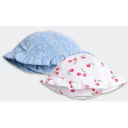 Baby 2-Pack Pure Cotton Embroidered and Cherry Print Hats in Multi