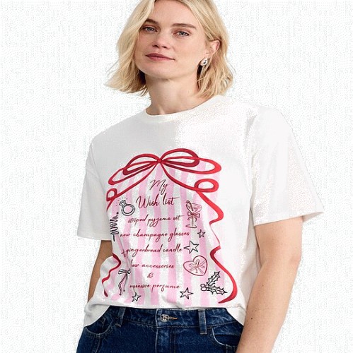 Pure Cotton My Wish List Printed T-Shirt in Cream