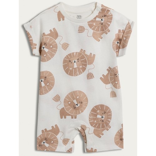 Pure Cotton Lion Print Short Sleeved Romper in Neutral