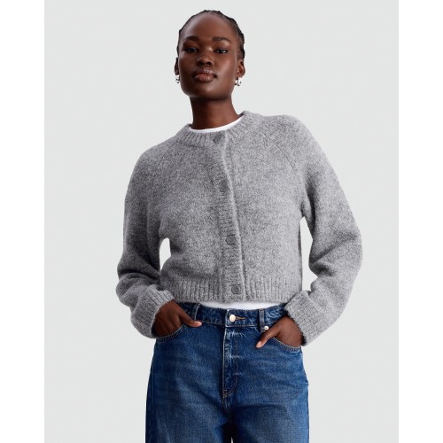 Knitted Scarf Collar Button Front Cardigan in Grey