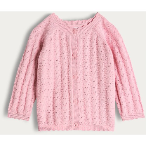 Pointelle Knitted Cardigan in Pink