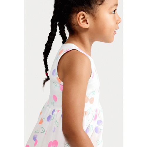 F&F Girls Pure Cotton Cherry Print Sleeveless Dress in White