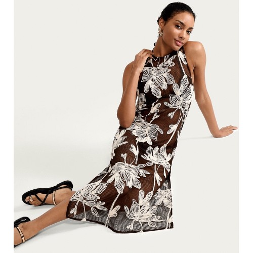 Floral Embroidered Sleeveless Beach Dress in Multi Brown