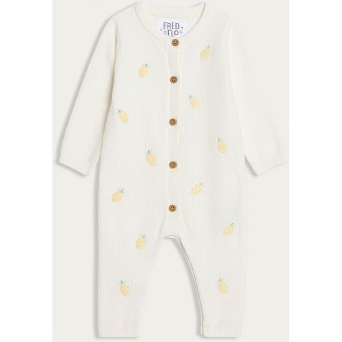 Pure Cotton Knitted Lemon Embroidered Romper in White