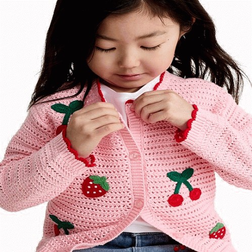 F&F Girls Pure Cotton Knitted Fruit Cardigan in Pink
