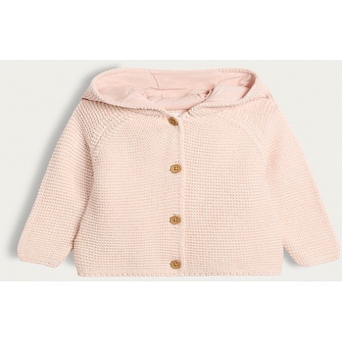Pure Cotton Knitted Button Front Hooded Cardigan in Multi Pink