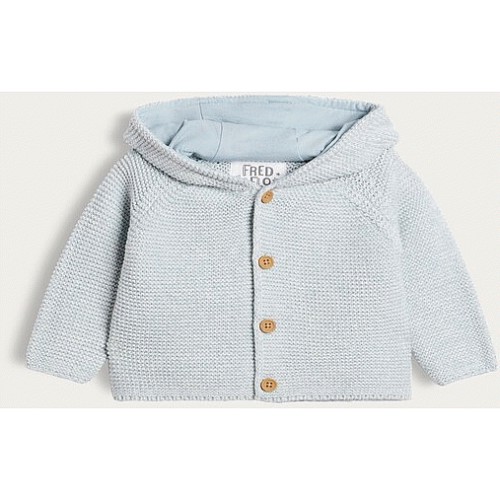 Pure Cotton Knitted Button Front Hooded Cardigan in Blue