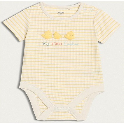 Cotton Rich Striped My First Easter Bodysuit in White