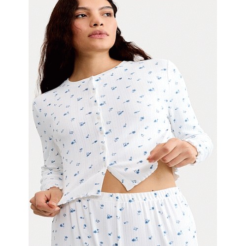 Pointelle Floral Print Button Up Pyjama Top in Cream
