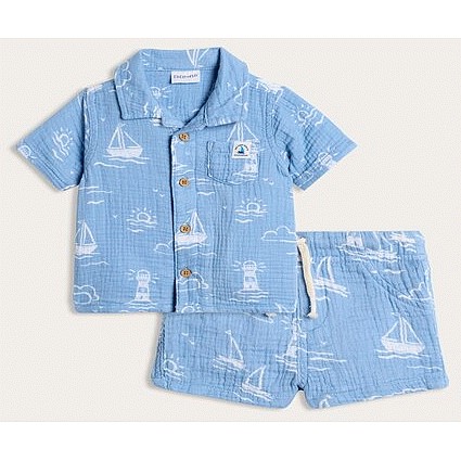 Pure Cotton Nautical Print Shirt and Shorts Set in Blue