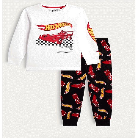 Hot Wheels Pure Cotton Printed Pyjama Set in White Multi