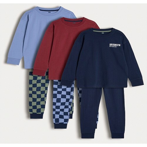 Boys 3-Pack Pure Cotton Pyjama Set in Blue Multi