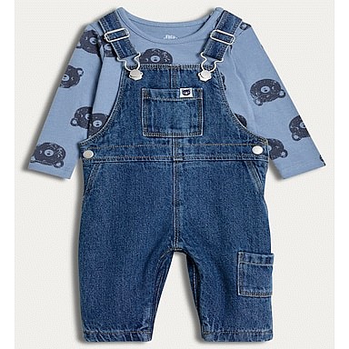 2-Piece Pure Cotton Bodysuit and Dungarees Set in Blue