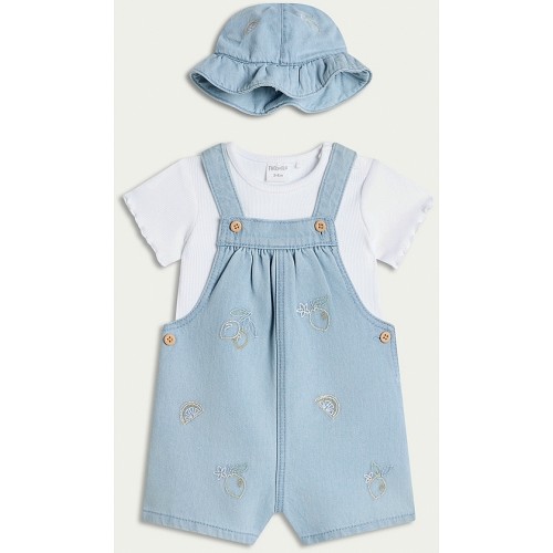 3-Piece Pure Cotton Embroidered Romper Set in Blue