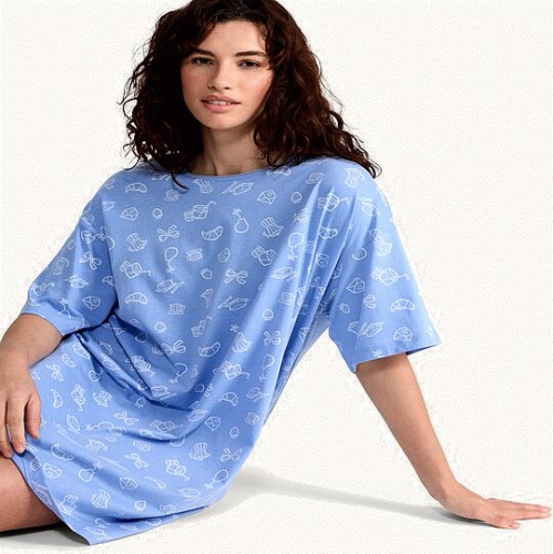 Pure Cotton Breakfast Print Nightdress in Blue