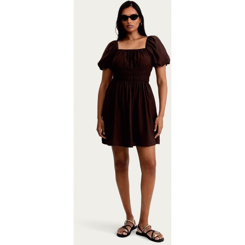 Pure Cotton Smocked Flutter Sleeved Dress in White