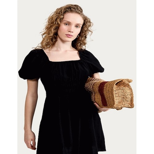Smocked Puff Sleeved Mini Dress in Black