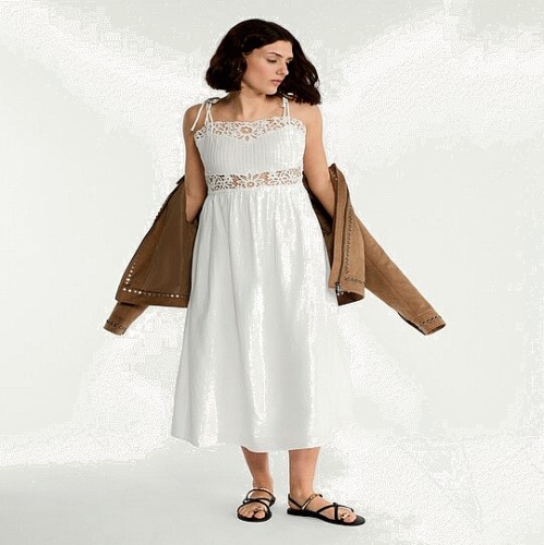 Pure Cotton Embroidered Sleeveless Dress in Cream