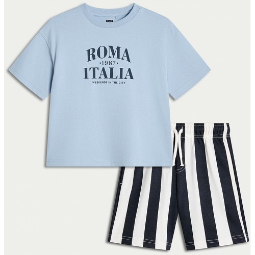 2-Piece Pure Cotton Portofino T-Shirt and Shorts Set in Blue
