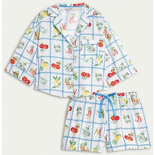 Pure Cotton Fruit Print Pyjama Set in Multi White