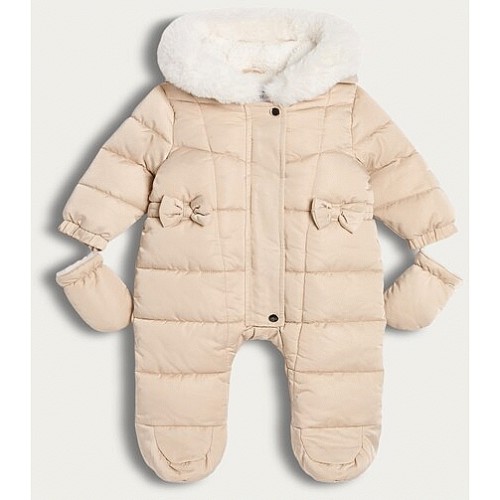F&F Baby Quilted Hooded Shower Resistant Pramsuit with Mittens in Blue