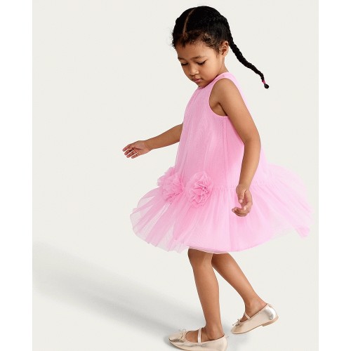 F&F Girls Tulle Flower Trim Sleeveless Dress in Pink