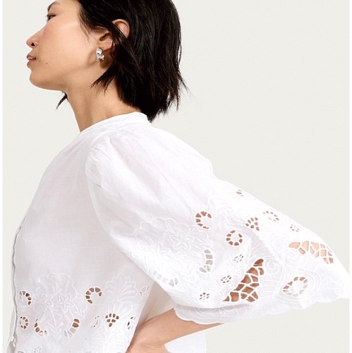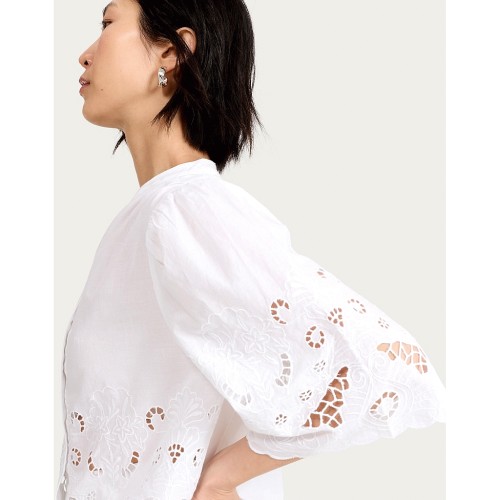 Pure Cotton Broderie Cut Out Co-ord Blouse in White