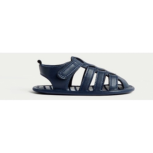 Strap Fastening Pramshoe Sandals in Navy