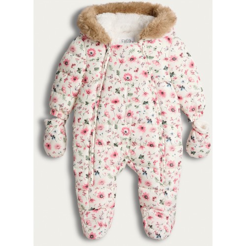 Padded Floral Print Shower Resistant Pramsuit in Multi