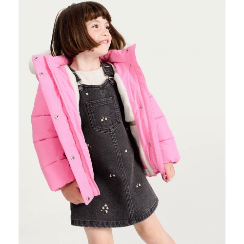 F&F Girls Fluffy Hood Padded Shower Resistant Jacket in Pink