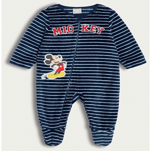 Disney Mickey Mouse Fleece Stripe Print Sleepsuit in Navy