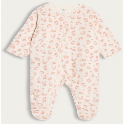 Soft Touch Fleece Leopard Print Sleepsuit in Pink