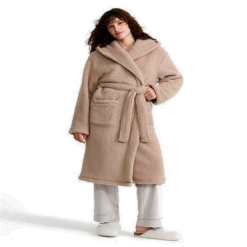 Fleece Textured Hooded Bear Ear Dressing Gown in Brown