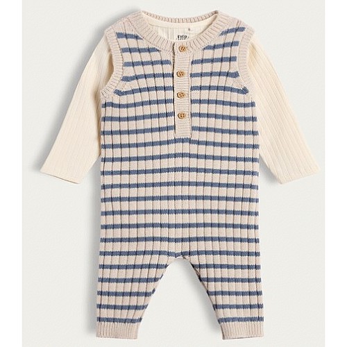 2-Piece Cotton Rich Striped Button Front Romper and Bodysuit Set in Blue