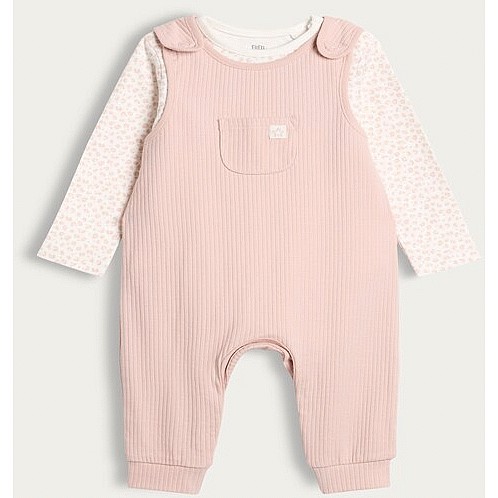 Cotton Rich Ribbed Dungarees and Bodysuit Set in Pink