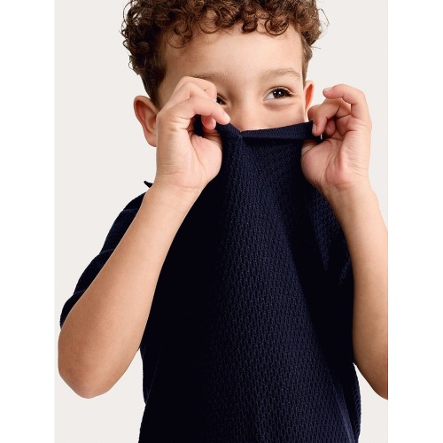 F&F Boys Textured Knit Polo Shirt in Navy