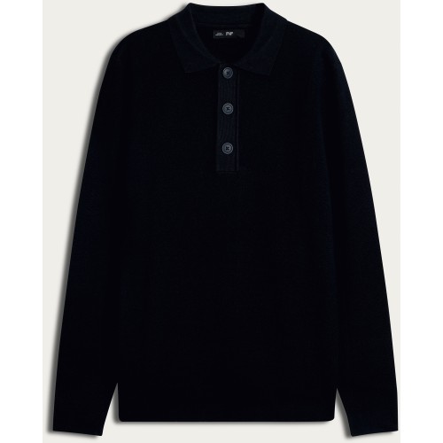 Knitted Long Sleeved Polo Jumper in Navy