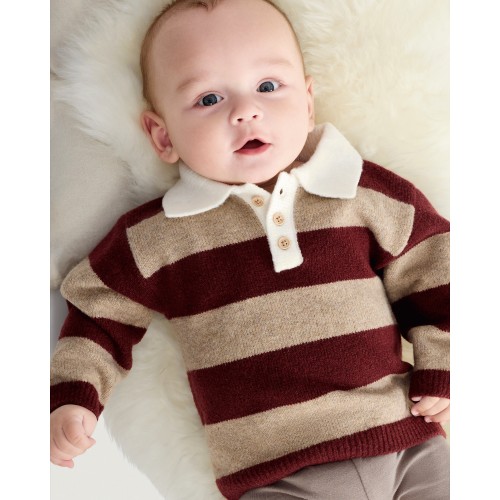 F&F Baby Striped Knitted Polo Jumper in Burgundy