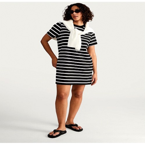 Striped T-Shirt Mini Dress in Multi Black