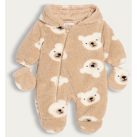 Teddy Bear Print Pramsuit in Brown