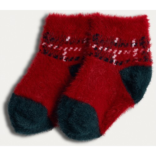 Baby Check Matching Family Christmas Cosy Socks in Red