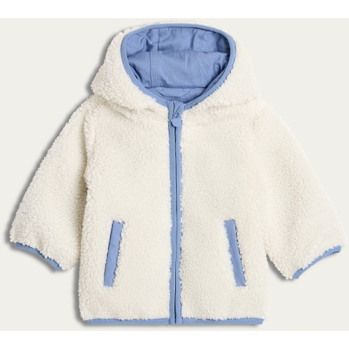 F&F Girls Borg Textured Padded Hooded Jacket in Cream