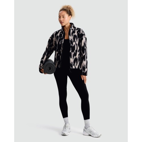 Borg Textured Animal Pocket Hooded Jacket in Brown