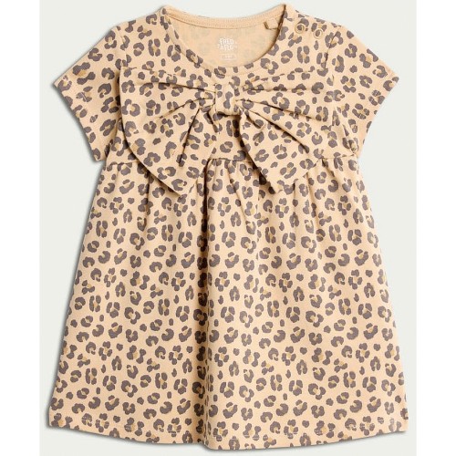 Cotton Rich Leopard Print Bow Dress in Tobacco