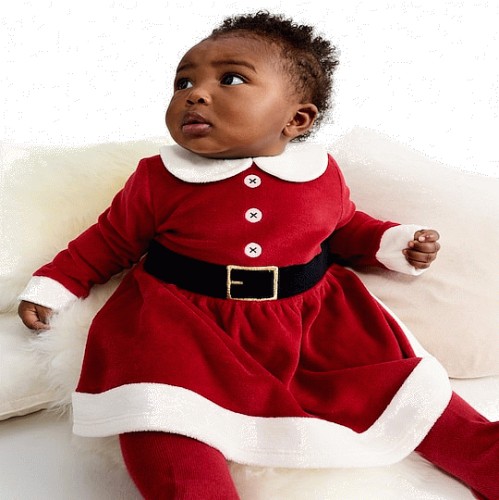 2-Piece Velour Santa Dress and Tights Set in Red