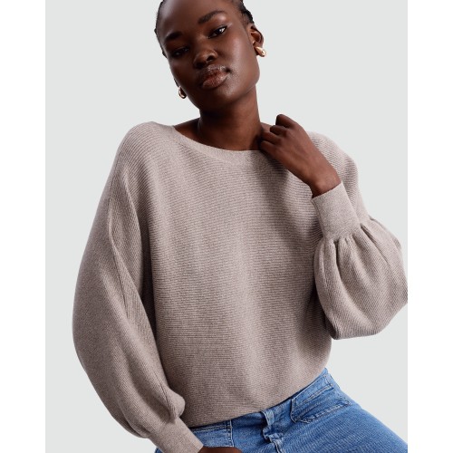 Ribbed Crew Neck Batwing Sleeved Jumper in Mink