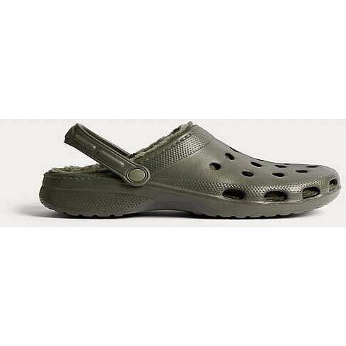 Borg Lined Slip On Clogs in Khaki